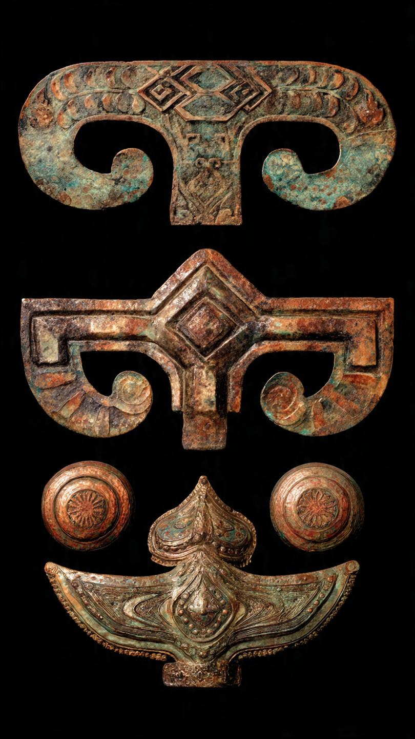 This incredible piece could be a pendant or part of a larger ornamental ensemble, possibly used in ceremonial or ritual contexts, given its intricate craftsmanship and symbolic motifs.