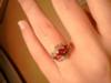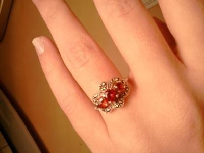 I was given a beautiful 3 stone garnet ring as a gift. I was told that it is sterling silver and it was purchased from an antique shop. The stone features one larger garnet surrounded by two smaller garnets, each is held in a four prong setting. The stones are surrounded by a type of fleur-de-lis pattern with small hematite(?) stones that sparkle brilliantly. If you could tell me the age or origin of this ring that would be wonderful. Thank you!