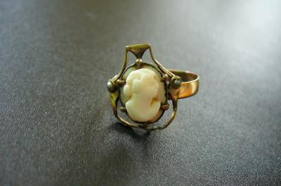 The cameo ring shown appears to have 4 stamps inside the band - an anchor, a W, a 12 and either a 5 or 25. Any idea what these mean? Do you have any idea how old this ring is or what it might be worth?