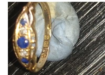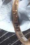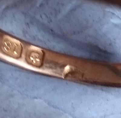 Hi could someone please help me with this 18k gold ring marked Chester. The maker's mark looks like a crescent moon or maybe a curved E. The date letter is maybe a H or an R and the design number is 468182.