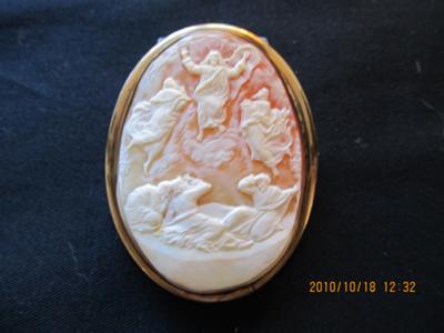 I have this shell cameo that depicts Christ's acension. I was hoping that someone could help me with value, date, and history of some sort. I got it with a gold-plated angel statuary.