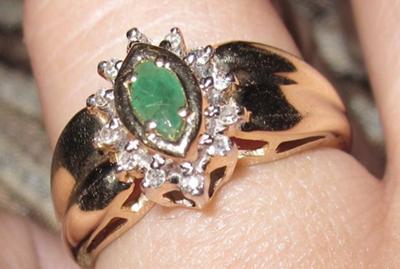 I rediscovered this ring among my jewelry. It looks to be 14k gold, diamond and emerald. No idea how old it is. The stamp says 14k, and there is also a diamond shape with a capital F in the middle. I've been unable to determine to whom this hallmark belongs.