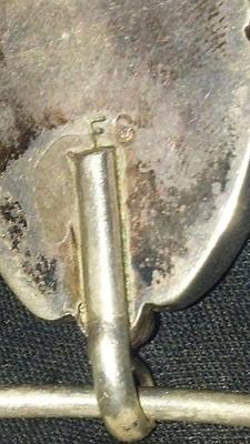 I inherited a pendant from my great grandmother (she resided in Oaklahoma in case that helps) along with a choker. I know the choker is real silver, but it has no numbers or markings of any kind. My interest, however, is in the pendant. I am sending pictures; as you can see, it is a single, large piece of turquoise n a silver setting with the initials FC on the back. The pendant alone weighs 12.23 grams. I believe that I have dated it to 1940, but can not be sure. Any information you have will be utterly appreciated. Email is the best way to contact me.