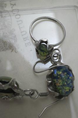 is my ring & earring set vintage? what does the six letter mark mean? i can't even read it. what kind of stone is it?