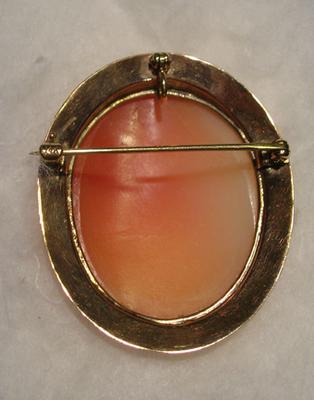A local jeweler said it has 14K gold, carved in shell and was made in Italy.