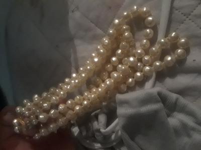 My mother's antique 1950s four teir row pearl necklace. With original clasp. Diamond placed on clasp as well. Original white pearls. Perfect condition. Mint condition.