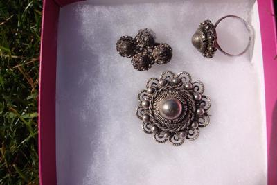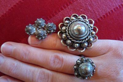 Old silver ring and brooches