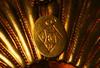 I have a lovely gold pendant that may once have also been a brooch. It is set with amethyst. The only marking is on the back. I have included photos. It is a diamond shape with an "Ra" in the center, or possibly "Rd" or "R6." The diamond is divided into five parts. Around the "R," at the top is the number 25. To the left is an "I," to the right is an "X." At the bottom is the letter "M."