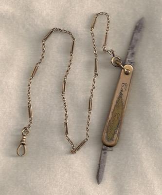 I have an old watch fob and inside the clasp it is marked. There is an arrow. Inside the "feather" it says "10K". The shaft goes through the letters MC. Any help would be appreciated!! Thanks