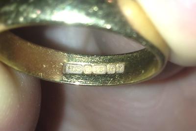 I wear my grandmother's wedding band every day but have only just noticed all the hallmarks and wondering what they mean! Have managed to figure out the 18 carat mark but can't find a match for the H.S (which I'm guessing is the makers mark) or the last two symbols. I believe the last is a Y.