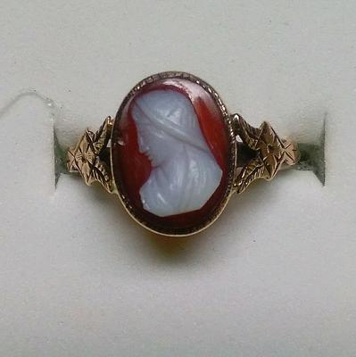 The ring appears to be carnelian. Its 9ct rose gold. I don't know if figure is male or female. Bought from antique shop in new Zealand. In good condition. What is it worth?